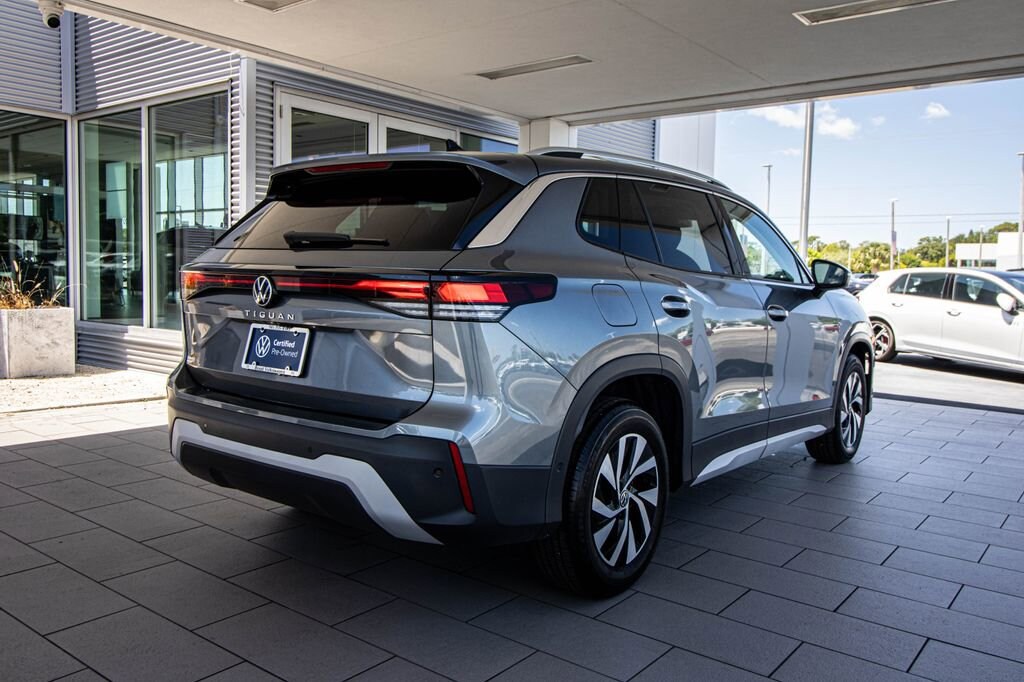 Priced below KBB Fair Purchase Price! CARFAX One-Owner. 2025 Certified. Volkswagen Tiguan 2.0T S FWD Platinum Gray Metallic Volkswagen CERTIFIED 2yr / 24k bumper to bumper warranty, Balance of Factory Warranty Plus @ 2yr 24,000 MILE BUMPER TO BUMPER CERTIFIED WARRANTY, REAR VIEW CAMERA, LIGHT ASSIST, PARK DISTANCE CONTROL, TRAVEL ASSIST, ADAPTIVE CRUISE, LANE ASSIST, FORWARD COLLISION WARNING, BLIND SPOT MONITOR, REAR TRAFFIC ALERT, VW DIGITAL COCKPIT, APPLE CARPLAY, ANDROID AUTO, APP-CONNECT/ BLUETOOTH, WIRELESS CHARGING DOC,, HEATED FRONT SEATS, 4D Sport Utility, 8-Speed Automatic, Air Conditioning, AM/FM radio: SiriusXM with 360L, Automatic temperature control, Emergency communication system: VW Car-Net Safe & Secure 5-year, Heated door mirrors, Heated Front Seats, Power door mirrors, Power windows, Rear window defroster, Remote keyless entry, Speed-sensing steering, Spoiler, Steering wheel mounted audio controls, Turn signal indicator mirrors, Wheels: 17" 2-Tone Machined Alloy. 26/34 City/Highway MPG Volkswagen Certified Pre-Owned Details: