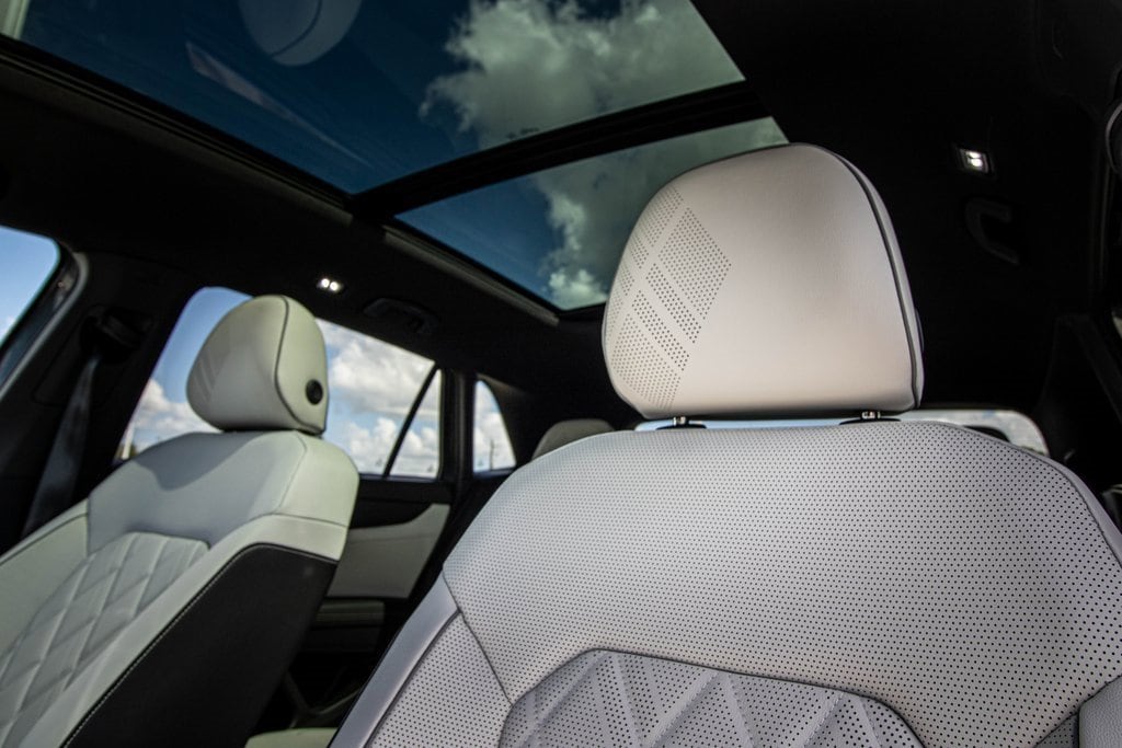 Well equipped with 4-Wheel Disc Brakes, 4-Wheel Independent Suspension, 6 Speakers, ABS brakes, Air Conditioning, Alloy wheels, AM/FM radio: SiriusXM with 360L, Auto High-beam Headlights, Auto-Dimming Rear-View Mirror, Auto-dimming Rear-View mirror, Automatic temperature control, Brake assist, Bumpers: body-color, Compass, Delay-off headlights, Driver door bin, Driver vanity mirror, Dual front impact airbags, Dual front side impact airbags, Electronic Stability Control, Emergency communication system: VW Car-Net Safe & Secure 5-year, Exterior Parking Camera Rear, Four wheel independent suspension, Front anti-roll bar, Front Bucket Seats, Front Center Armrest, Front dual zone A/C, Front fog lights, Front reading lights, Fully automatic headlights, harman/kardon® Speakers, Heads-Up Display, Heated & Actively Ventilated Front Seats, Heated door mirrors, Heated front seats, Heated rear seats, Heated steering wheel, Illuminated entry, Leather steering wheel, Low tire pressure warning, Memory seat, Navigation System, Occupant sensing airbag, Outside temperature display, Overhead airbag, Overhead console, Panic alarm, Passenger door bin, Passenger vanity mirror, Perforated Vienna Leather Seating Surfaces, Power door mirrors, Power driver seat, Power Liftgate, Power moonroof: Panoramic, Power passenger seat, Power steering, Power windows, Radio data system, Radio: MIB3 Discover Pro Navigation AM/FM/HD, Rain sensing wipers, Rear anti-roll bar, Rear audio controls, Rear reading lights, Rear seat center armrest, Rear window defroster, Rear window wiper, Remote keyless entry, Security system, Speed control, Speed-sensing steering, Split folding rear seat, Spoiler, Sport steering wheel, Steering wheel mounted audio controls, Tachometer, Telescoping steering wheel, Tilt steering wheel, Traction control, Trip computer, Turn signal indicator mirrors, Variably intermittent wipers, Ventilated front seats, and Wheels: 21" 2-Tone Machined Alloy.