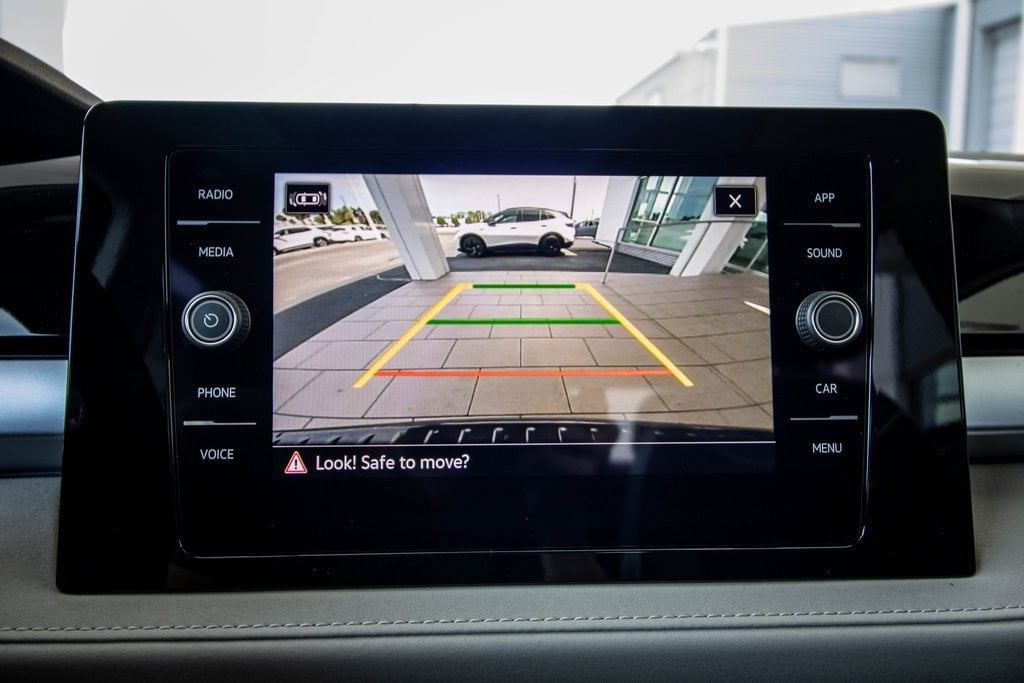 Well equipped with Black Wheel Package (Wheels: 18" Black Painted Alloy), Panoramic Sunroof Package, 4-Wheel Disc Brakes, 6 Speakers, ABS brakes, Active Blind Spot Monitor, Air Conditioning, Alloy wheels, AM/FM radio: SiriusXM with 360L, Auto High-beam Headlights, Auto-Dimming Rearview Mirror w/HomeLink Connect, Automatic temperature control, Brake assist, Bumpers: body-color, CloudTex & Cloth Seating Surfaces, Compass, Delay-off headlights, Driver door bin, Driver vanity mirror, Dual front impact airbags, Dual front side impact airbags, Electronic Stability Control, Emergency communication system: VW Car-Net Safe & Secure 5-year, Exterior Parking Camera Rear, Front anti-roll bar, Front Bucket Seats, Front Center Armrest, Front dual zone A/C, Front reading lights, Front Strut Rear Torsion Beam Suspension, Front wheel independent suspension, Fully automatic headlights, Heated door mirrors, Heated Front Bucket Seats, Heated front seats, Heated steering wheel, Illuminated entry, Leather Shift Knob, Low tire pressure warning, Occupant sensing airbag, Outside temperature display, Overhead airbag, Overhead console, Panic alarm, Passenger door bin, Passenger vanity mirror, Power door mirrors, Power driver seat, Power steering, Power windows, Radio data system, Radio: MIB3 Composition Media AM/FM/HD, Rain sensing wipers, Rear anti-roll bar, Rear seat center armrest, Rear window defroster, Rear window wiper, Remote keyless entry, Rubber Mats Kit, Security system, Speed control, Speed-sensing steering, Split folding rear seat, Spoiler, Steering wheel mounted audio controls, Tachometer, Telescoping steering wheel, Tilt steering wheel, Traction control, Trip computer, Variably intermittent wipers, VW Care, and Wheels: 18" 2-Tone Machined Alloy.