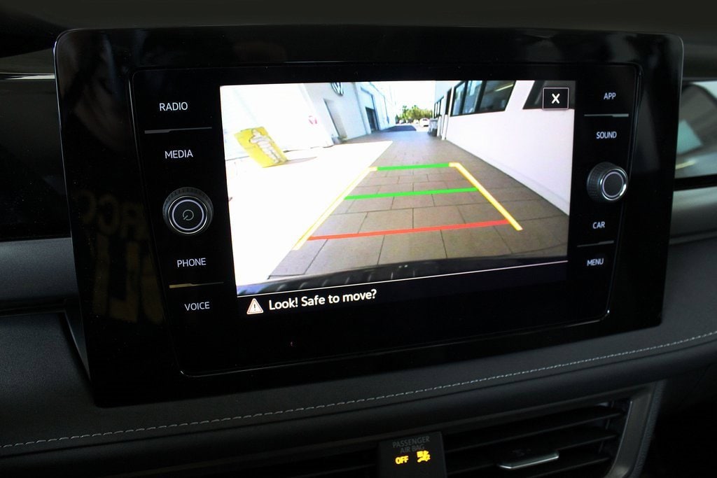 Well equipped with 4-Wheel Disc Brakes, 6 Speakers, ABS brakes, Active Blind Spot Monitor, Air Conditioning, Alloy wheels, AM/FM radio: SiriusXM with 360L, Auto High-beam Headlights, Auto-Dimming Rearview Mirror w/HomeLink Connect, Automatic temperature control, Brake assist, Bumpers: body-color, CloudTex & Cloth Seating Surfaces, Compass, Delay-off headlights, Driver door bin, Driver vanity mirror, Dual front impact airbags, Dual front side impact airbags, Electronic Stability Control, Emergency communication system: VW Car-Net Safe & Secure 5-year, Exterior Parking Camera Rear, Front anti-roll bar, Front Bucket Seats, Front Center Armrest, Front dual zone A/C, Front reading lights, Front Strut Rear Torsion Beam Suspension, Front wheel independent suspension, Fully automatic headlights, Heated door mirrors, Heated Front Bucket Seats, Heated front seats, Heated steering wheel, Illuminated entry, Leather Shift Knob, Low tire pressure warning, Occupant sensing airbag, Outside temperature display, Overhead airbag, Overhead console, Panic alarm, Passenger door bin, Passenger vanity mirror, Power door mirrors, Power driver seat, Power moonroof, Power steering, Power windows, Radio data system, Radio: MIB3 Composition Media AM/FM/HD, Rain sensing wipers, Rear anti-roll bar, Rear seat center armrest, Rear window defroster, Rear window wiper, Remote keyless entry, Rubber Mats Kit, Security system, Speed control, Speed-sensing steering, Split folding rear seat, Spoiler, Steering wheel mounted audio controls, Tachometer, Telescoping steering wheel, Tilt steering wheel, Traction control, Trip computer, Variably intermittent wipers, VW Care, and Wheels: 18" Black Painted Alloy.