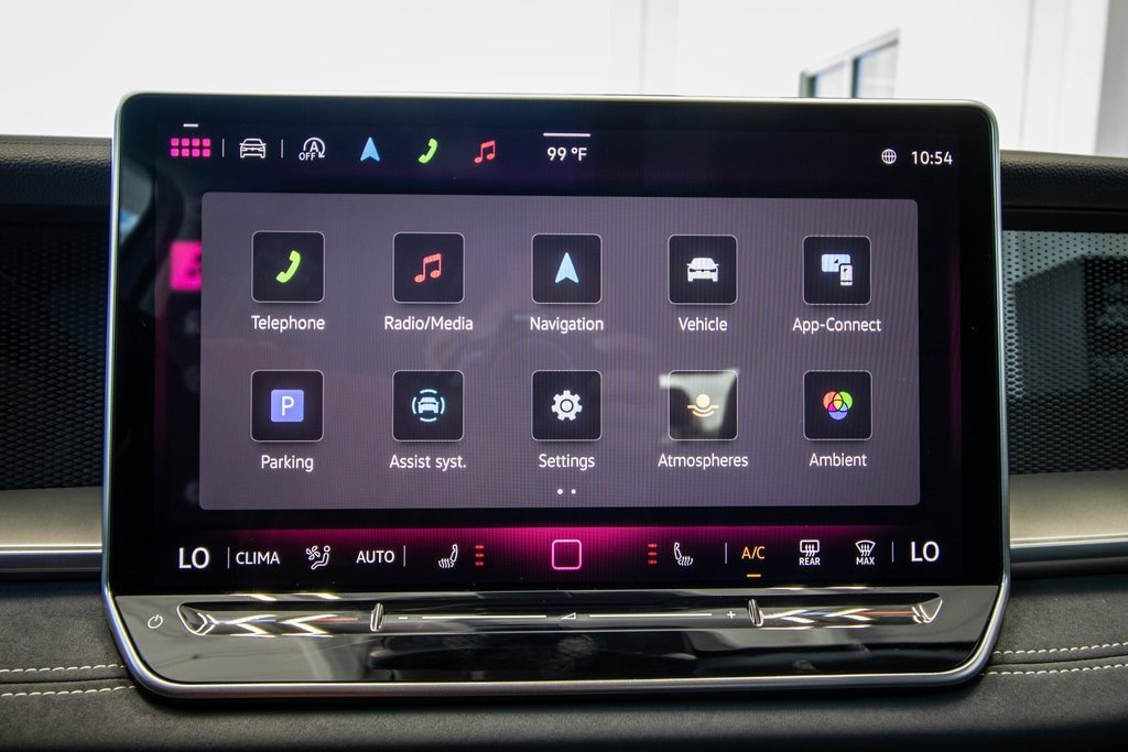 Well equipped with 4-Wheel Disc Brakes, 4-Wheel Independent Suspension, 7 Speakers, ABS brakes, Air Conditioning, Alloy wheels, AM/FM radio: SiriusXM with 360L, Auto High-beam Headlights, Auto-dimming Rear-View mirror, Auto-Dimming Rearview Mirror w/HomeLink Connect, Automatic temperature control, Brake assist, Bumpers: body-color, Compass, Delay-off headlights, Driver door bin, Driver vanity mirror, Dual front impact airbags, Dual front side impact airbags, Electronic Stability Control, Emergency communication system: VW Car-Net Safe & Secure 5-year, Exterior Parking Camera Rear, First Aid Kit, Four wheel independent suspension, Front anti-roll bar, Front Bucket Seats, Front Center Armrest, Front dual zone A/C, Front reading lights, Fully automatic headlights, Heated door mirrors, Heated Front Seats, Heated front seats, Heavy Duty Trunk Liner w/VW CarGo Blocks, Illuminated entry, Knee airbag, Leather Shift Knob, Low tire pressure warning, Occupant sensing airbag, Outside temperature display, Overhead airbag, Overhead console, Panic alarm, Passenger door bin, Passenger vanity mirror, Perforated V-Tex Leatherette Seating Surfaces, Power door mirrors, Power driver seat, Power Liftgate, Power steering, Power windows, Radio data system, Radio: MIB4 Composition Media Touchscreen AM/FM, Rain sensing wipers, Rear anti-roll bar, Rear reading lights, Rear seat center armrest, Rear side impact airbag, Rear window defroster, Rear window wiper, Remote keyless entry, Roadside Assistance Kit, Rubber Monster Mats Kit (Set of 4), Security system, Speed control, Speed-sensing steering, Split folding rear seat, Spoiler, Steering wheel mounted audio controls, Tachometer, Telescoping steering wheel, Tilt steering wheel, Traction control, Trip computer, Turn signal indicator mirrors, Variably intermittent wipers, VW Care, and Wheels: 19" 2-Tone Machined Alloy.