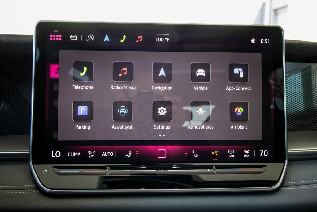 Well equipped with 4-Wheel Disc Brakes, 4-Wheel Independent Suspension, 7 Speakers, ABS brakes, Air Conditioning, Alloy wheels, AM/FM radio: SiriusXM with 360L, Auto High-beam Headlights, Auto-dimming Rear-View mirror, Auto-Dimming Rearview Mirror w/HomeLink Connect, Automatic temperature control, Brake assist, Bumpers: body-color, Compass, Delay-off headlights, Driver door bin, Driver vanity mirror, Dual front impact airbags, Dual front side impact airbags, Electronic Stability Control, Emergency communication system: VW Car-Net Safe & Secure 5-year, Exterior Parking Camera Rear, First Aid Kit, Four wheel independent suspension, Front anti-roll bar, Front Bucket Seats, Front Center Armrest, Front dual zone A/C, Front reading lights, Fully automatic headlights, Heads-Up Display, Heated door mirrors, Heated Front Seats, Heated front seats, Heavy Duty Trunk Liner w/VW CarGo Blocks, Illuminated entry, Knee airbag, Leather Shift Knob, Leather steering wheel, Low tire pressure warning, Occupant sensing airbag, Outside temperature display, Overhead airbag, Overhead console, Panic alarm, Passenger door bin, Passenger vanity mirror, Perforated V-Tex Leatherette Seating Surfaces, Power door mirrors, Power driver seat, Power Liftgate, Power moonroof, Power steering, Power windows, Radio data system, Radio: MIB4 Composition Media Touchscreen AM/FM, Rain sensing wipers, Rear anti-roll bar, Rear reading lights, Rear seat center armrest, Rear side impact airbag, Rear window defroster, Rear window wiper, Remote keyless entry, Roadside Assistance Kit, Rubber Monster Mats Kit (Set of 4), Security system, Speed control, Speed-sensing steering, Split folding rear seat, Spoiler, Sport steering wheel, Steering wheel mounted audio controls, Tachometer, Telescoping steering wheel, Tilt steering wheel, Traction control, Trip computer, Turn signal indicator mirrors, Variably intermittent wipers, VW Care, and Wheels: 20" Black Painted Alloy.