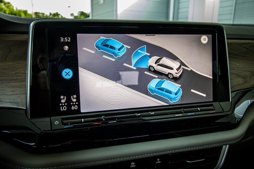 Well equipped with 3rd row seats: split-bench, 4-Wheel Disc Brakes, 4-Wheel Independent Suspension, 6 Speakers, ABS brakes, Air Conditioning, Alloy wheels, AM/FM radio: SiriusXM with 360L, Auto High-beam Headlights, Auto-dimming Rear-View mirror, Auto-Dimming Rearview Mirror with HomeLink, Automatic temperature control, Brake assist, Bumpers: body-color, Delay-off headlights, Driver door bin, Driver vanity mirror, Dual front impact airbags, Dual front side impact airbags, Electronic Stability Control, Emergency communication system: VW Car-Net Safe & Secure 5-year, Exterior Parking Camera Rear, First Aid Kit, Four wheel independent suspension, Front anti-roll bar, Front Bucket Seats, Front Center Armrest, Front dual zone A/C, Front fog lights, Front reading lights, Fully automatic headlights, Heated and Actively Ventilated Front Bucket Seats, Heated door mirrors, Heated front seats, Heated steering wheel, Illuminated entry, Low tire pressure warning, Occupant sensing airbag, Outside temperature display, Overhead airbag, Overhead console, Panic alarm, Passenger door bin, Passenger vanity mirror, Perforated V-Tex Leatherette Seating Surfaces, Power door mirrors, Power driver seat, Power steering, Power windows, Radio data system, Radio: MIB3 Composition Media, Rain sensing wipers, Rear air conditioning, Rear anti-roll bar, Rear reading lights, Rear seat center armrest, Rear window defroster, Rear window wiper, Remote keyless entry, Security system, Speed control, Speed-sensing steering, Split folding rear seat, Spoiler, Steering wheel mounted audio controls, Tachometer, Telescoping steering wheel, Tilt steering wheel, Traction control, Trip computer, Turn signal indicator mirrors, Variably intermittent wipers, Ventilated front seats, VW Care, and Wheels: 18" 2-Tone Machined Alloy.