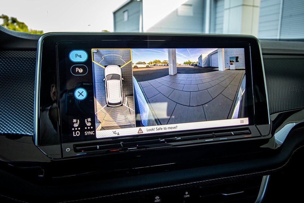 Well equipped with 10 Speakers, 4-Wheel Disc Brakes, 4-Wheel Independent Suspension, ABS brakes, Air Conditioning, Alloy wheels, AM/FM radio: SiriusXM with 360L, Auto High-beam Headlights, Auto-dimming Rear-View mirror, Automatic temperature control, Brake assist, Bumpers: body-color, Compass, Delay-off headlights, Driver door bin, Driver vanity mirror, Dual front impact airbags, Dual front side impact airbags, Electronic Stability Control, Emergency communication system: VW Car-Net Safe & Secure 5-year, Exterior Parking Camera Rear, First Aid Kit, Four wheel independent suspension, Front anti-roll bar, Front Bucket Seats, Front Center Armrest, Front dual zone A/C, Front fog lights, Front reading lights, Front-Door Mounted Volkswagen Logo Puddle Lights (set of 2), Fully automatic headlights, Garage door transmitter: HomeLink, harman/kardon® Speakers, Heads-Up Display, Heated and Actively Ventilated Front Bucket Seats, Heated door mirrors, Heated front seats, Heated rear seats, Heated steering wheel, Heavy Duty Trunk Liner with VW CarGo Blocks, Illuminated entry, Leather steering wheel, Low tire pressure warning, Memory seat, Navigation System, Occupant sensing airbag, Outside temperature display, Overhead airbag, Overhead console, Panic alarm, Passenger door bin, Passenger vanity mirror, Perforated Vienna Leather Seating Surfaces, Power door mirrors, Power driver seat, Power Liftgate, Power moonroof: Panoramic, Power passenger seat, Power steering, Power windows, Radio data system, Radio: MIB3 Discover Pro with Navigation, Rain sensing wipers, Rear anti-roll bar, Rear audio controls, Rear reading lights, Rear seat center armrest, Rear window defroster, Rear window wiper, Remote keyless entry, Retractable Privacy Cover For Cargo Area, Roadside Assistance Kit, Rubber Monster Mats Kit (set of 4), Seat Inserts with Diamond-Pattern Stitching, Security system, Speed control, Speed-sensing steering, Split folding rear seat, Spoiler, Sport steering wheel, Steering wheel mounted audio controls, Tachometer, Telescoping steering wheel, Tilt steering wheel, Traction control, Trip computer, Turn signal indicator mirrors, Variably intermittent wipers, Ventilated front seats, VW Care, and Wheels: 21" 2-Tone Machined Alloy.