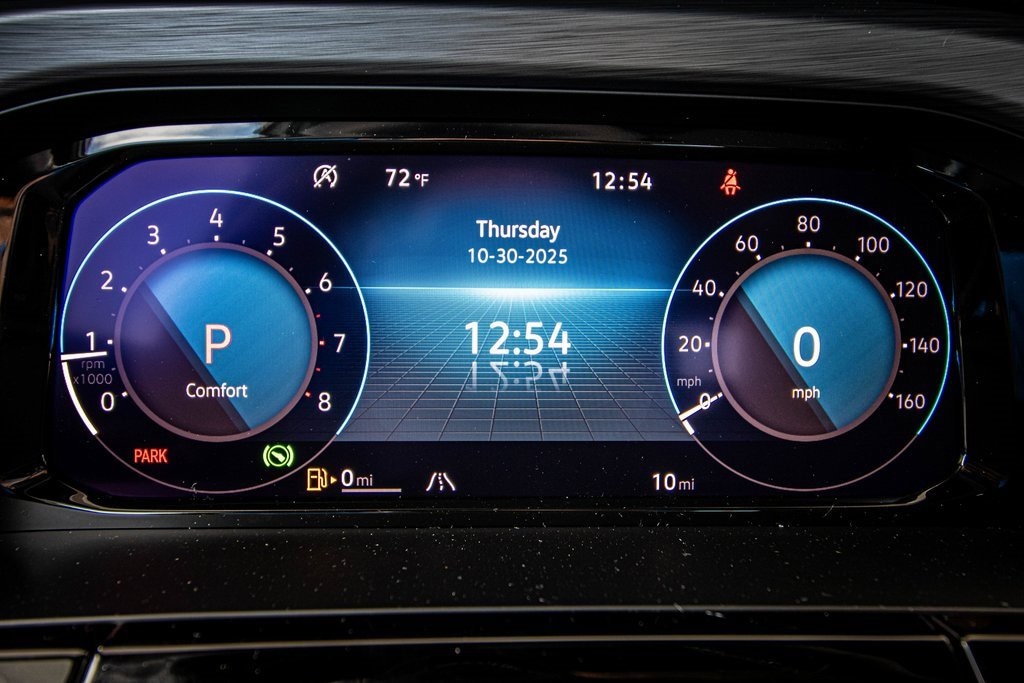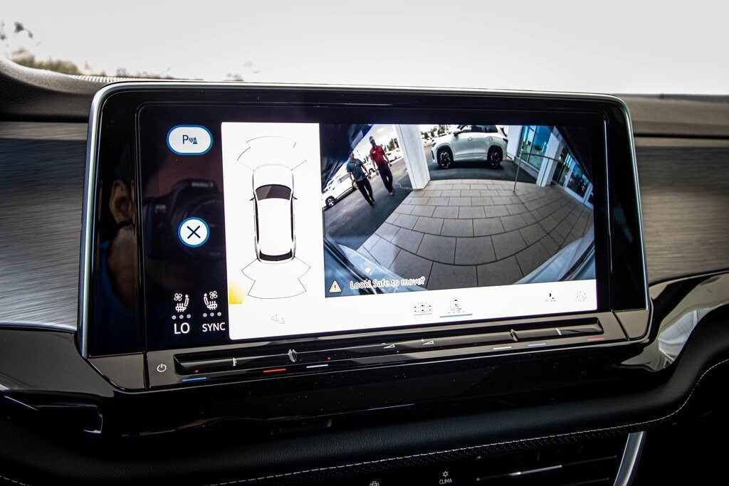 Well equipped with Black Wheel Package (Wheels: 20" Multi-Spoke Black Painted Alloy), Panoramic Sunroof Package (Power Tilting & Sliding Panoramic Sunroof), 4-Wheel Disc Brakes, 4-Wheel Independent Suspension, 6 Speakers, ABS brakes, Air Conditioning, Alloy wheels, AM/FM radio: SiriusXM with 360L, Auto High-beam Headlights, Auto-dimming Rear-View mirror, Automatic temperature control, Brake assist, Bumpers: body-color, Compass, Delay-off headlights, Driver door bin, Driver vanity mirror, Dual front impact airbags, Dual front side impact airbags, Electronic Stability Control, Emergency communication system, Exterior Parking Camera Rear, Four wheel independent suspension, Front anti-roll bar, Front Bucket Seats, Front Center Armrest, Front dual zone A/C, Front fog lights, Front reading lights, Fully automatic headlights, Garage door transmitter: HomeLink Connect, Heated & Actively Ventilated Front Seats, Heated door mirrors, Heated front seats, Heated steering wheel, Heavy Duty Trunk Liner w/VW CarGo Blocks, Illuminated entry, Low tire pressure warning, Occupant sensing airbag, Outside temperature display, Overhead airbag, Overhead console, Panic alarm, Passenger door bin, Passenger vanity mirror, Perforated V-Tex Leatherette Seating Surfaces, Power door mirrors, Power driver seat, Power Liftgate, Power steering, Power windows, Radio data system, Radio: MIB3 Composition Media AM/FM/HD, Rain sensing wipers, Rear anti-roll bar, Rear reading lights, Rear seat center armrest, Rear window defroster, Rear window wiper, Remote keyless entry, Rubber Monster Mats Kit (Set of 4), Security system, Speed control, Speed-sensing steering, Split folding rear seat, Spoiler, Steering wheel mounted audio controls, Tachometer, Telescoping steering wheel, Tilt steering wheel, Traction control, Trip computer, Turn signal indicator mirrors, Variably intermittent wipers, Ventilated front seats, Volkswagen Logo Puddle Lights (Set of 2), VW Care, and Wheels: 20" 5-Spoke 2-Tone Machined Alloy.