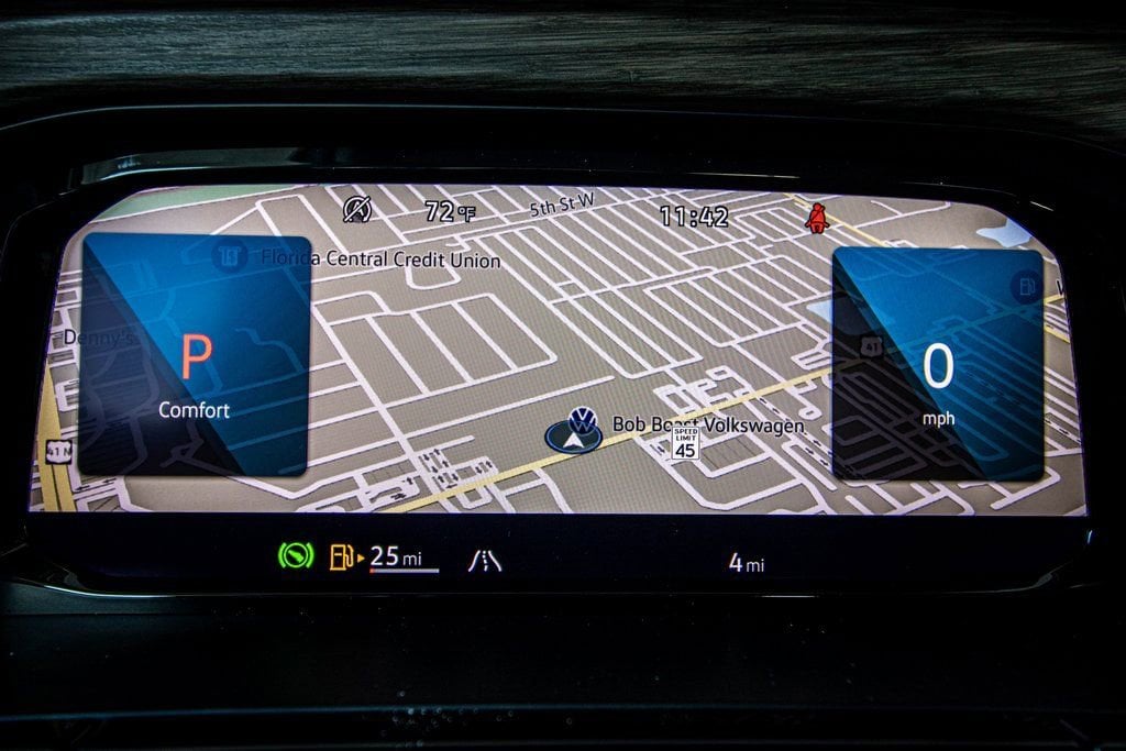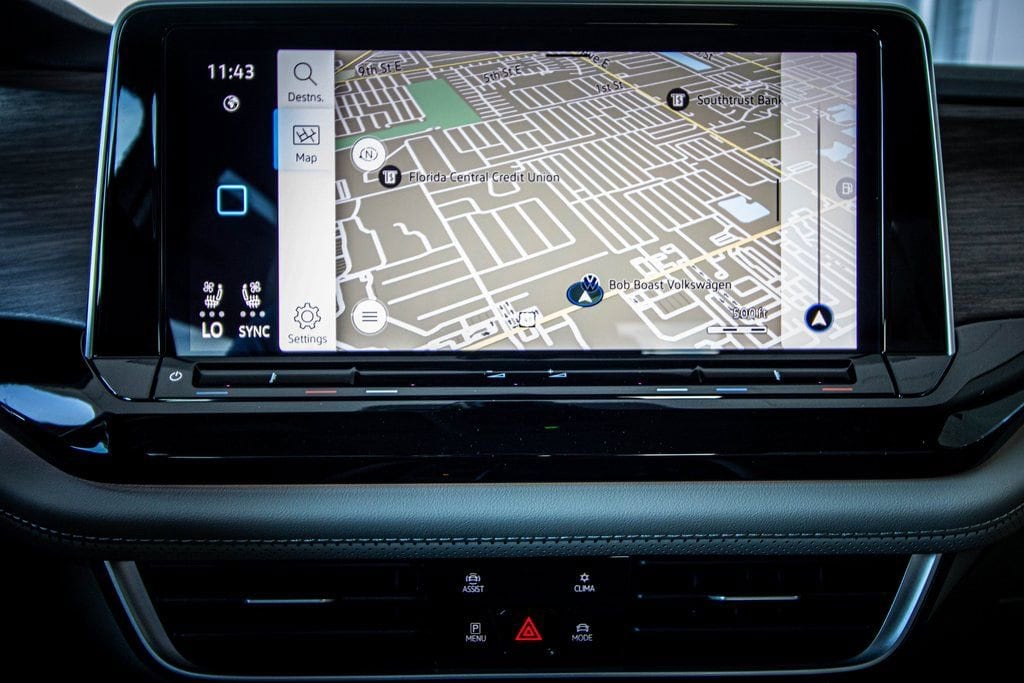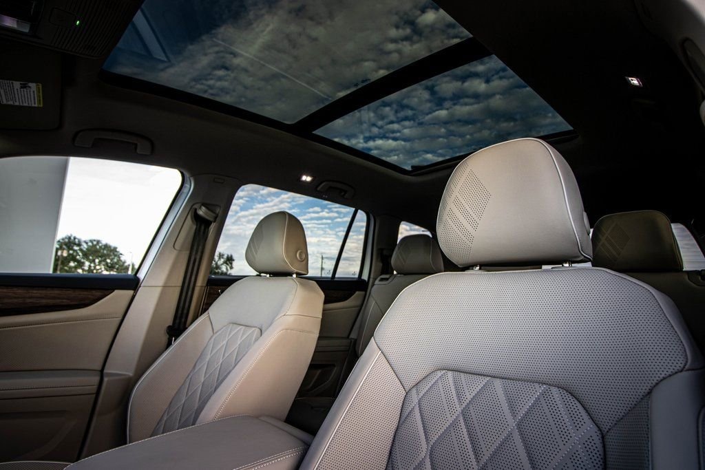 Well equipped with 10 Speakers, 3rd row seats: split-bench, 4-Wheel Disc Brakes, 4-Wheel Independent Suspension, ABS brakes, Air Conditioning, Alloy wheels, AM/FM radio: SiriusXM with 360L, Auto High-beam Headlights, Auto-dimming Rear-View mirror, Automatic temperature control, Brake assist, Bumpers: body-color, Compass, Delay-off headlights, Driver door bin, Driver vanity mirror, Dual front impact airbags, Dual front side impact airbags, Electronic Stability Control, Emergency communication system: VW Car-Net Safe & Secure 5-year, Exterior Parking Camera Rear, First Aid Kit, Four wheel independent suspension, Front anti-roll bar, Front Bucket Seats, Front Center Armrest, Front dual zone A/C, Front fog lights, Front reading lights, Fully automatic headlights, Garage door transmitter: HomeLink, harman/kardon® Speakers, Heads-Up Display, Heated & Actively Ventilated Front Bucket Seats, Heated door mirrors, Heated front seats, Heated rear seats, Heated steering wheel, Heavy Duty Trunk Liner w/VW CarGo Blocks, Illuminated entry, Leather steering wheel, Low tire pressure warning, Luggage Net, Memory seat, Navigation System, Occupant sensing airbag, Outside temperature display, Overhead airbag, Overhead console, Panic alarm, Passenger door bin, Passenger vanity mirror, Perforated Vienna Leather Seating Surfaces, Power door mirrors, Power driver seat, Power Liftgate, Power moonroof: Panoramic, Power passenger seat, Power steering, Power windows, Radio data system, Radio: MIB3 Discover Pro w/Navigation, Rain sensing wipers, Rear air conditioning, Rear anti-roll bar, Rear audio controls, Rear reading lights, Rear seat center armrest, Rear window defroster, Rear window wiper, Remote keyless entry, Retractable Privacy Cover For Cargo Area, Roadside Assistance Kit, Rubber Mats Kit (2-Row), Seat Inserts w/Diamond-Pattern Stitching, Security system, Speed control, Speed-sensing steering, Split folding rear seat, Spoiler, Sport steering wheel, Steering wheel mounted audio controls, Tachometer, Telescoping steering wheel, Tilt steering wheel, Traction control, Trip computer, Turn signal indicator mirrors, Variably intermittent wipers, Ventilated front seats, Volkswagen Logo Puddle Lights, VW Care, and Wheels: 21" 2-Tone Machined Alloy.