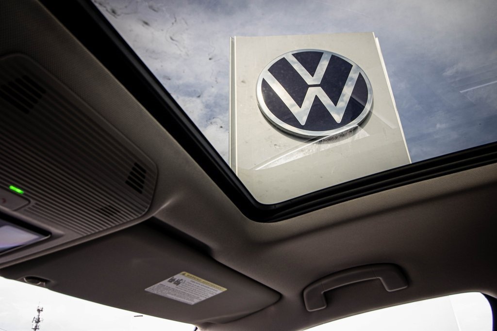 Well equipped with 3rd row seats: split-bench, 4-Wheel Disc Brakes, 4-Wheel Independent Suspension, 6 Speakers, ABS brakes, Air Conditioning, Alloy wheels, AM/FM radio: SiriusXM with 360L, Auto High-beam Headlights, Auto-dimming Rear-View mirror, Automatic temperature control, Brake assist, Bumpers: body-color, Compass, Delay-off headlights, Driver door bin, Driver vanity mirror, Dual front impact airbags, Dual front side impact airbags, Electronic Stability Control, Emergency communication system: VW Car-Net Safe & Secure 5-year, Exterior Parking Camera Rear, First Aid Kit, Four wheel independent suspension, Front anti-roll bar, Front Bucket Seats, Front Center Armrest, Front dual zone A/C, Front fog lights, Front reading lights, Fully automatic headlights, Garage door transmitter: HomeLink, Heads-Up Display, Heated and Actively Ventilated Front Bucket Seats, Heated door mirrors, Heated front seats, Heated rear seats, Heated steering wheel, Heavy Duty Trunk Liner with VW CarGo Blocks, Illuminated entry, Low tire pressure warning, Memory seat, Navigation System, Occupant sensing airbag, Outside temperature display, Overhead airbag, Overhead console, Panic alarm, Passenger door bin, Passenger vanity mirror, Perforated Vienna Leather Seating Surfaces, Power door mirrors, Power driver seat, Power Liftgate, Power moonroof: Panoramic, Power passenger seat, Power steering, Power windows, Radio data system, Radio: MIB3 Discover Pro with Navigation, Rain sensing wipers, Rear air conditioning, Rear anti-roll bar, Rear reading lights, Rear seat center armrest, Rear window defroster, Rear window wiper, Remote keyless entry, Retractable Privacy Cover For Cargo Area, Roadside Assistance Kit, Rubber Mats Kit (2-Row), Security system, Speed control, Speed-sensing steering, Split folding rear seat, Spoiler, Steering wheel mounted audio controls, Tachometer, Telescoping steering wheel, Tilt steering wheel, Traction control, Trip computer, Turn signal indicator mirrors, Variably intermittent wipers, Ventilated front seats, Volkswagen Logo Puddle Lights, VW Care, and Wheels: 20" 2-Tone Machined Alloy.