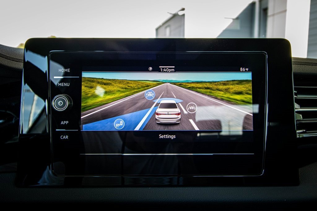 Well equipped with Titan Black Clo Cloth, 4 Speakers, 4-Wheel Disc Brakes, ABS brakes, Active Blind Spot Monitor, Air Conditioning, Alloy wheels, Auto-dimming Rear-View mirror, Auto-Dimming Rearview Mirror with HomeLink, Automatic temperature control, Brake assist, Bumpers: body-color, Cloth Seat Trim, Delay-off headlights, Driver door bin, Driver vanity mirror, Dual front impact airbags, Dual front side impact airbags, Electronic Stability Control, Emergency communication system: VW Car-Net Safe & Secure 5-year, Exterior Parking Camera Rear, First Aid Kit, Front anti-roll bar, Front Bucket Seats, Front Center Armrest, Front dual zone A/C, Front wheel independent suspension, Fully automatic headlights, Heated door mirrors, Heated Front Seats, Heated front seats, Heavy Duty Trunk Liner with VW CarGo Blocks, Illuminated entry, Leather Shift Knob, Leather steering wheel, Low tire pressure warning, Occupant sensing airbag, Outside temperature display, Overhead airbag, Overhead console, Panic alarm, Passenger door bin, Passenger vanity mirror, Power door mirrors, Power steering, Power windows, Radio data system, Radio: MIB3 Composition Color with 8" Touchscreen, Rain sensing wipers, Rear anti-roll bar, Rear reading lights, Rear seat center armrest, Rear window defroster, Remote keyless entry, Rubber Monster Mats Kit (set of 4), Speed control, Speed-sensing steering, Split folding rear seat, Steering wheel mounted audio controls, Tachometer, Telescoping steering wheel, Tilt steering wheel, Traction control, Trip computer, Variably intermittent wipers, VW Care, and Wheels: 17" 2-Tone Machined Alloy.