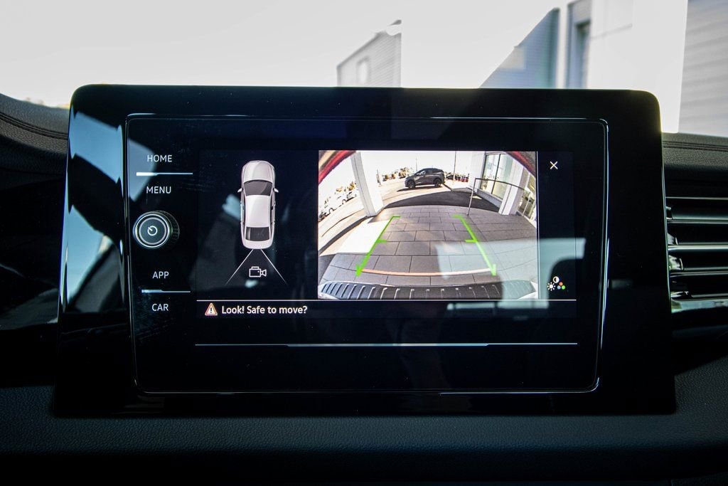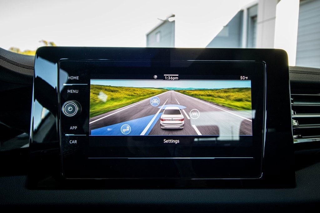 Well equipped with Titan Black Clo Cloth, 4 Speakers, 4-Wheel Disc Brakes, ABS brakes, Active Blind Spot Monitor, Air Conditioning, Alloy wheels, Auto-dimming Rear-View mirror, Auto-Dimming Rearview Mirror with HomeLink, Automatic temperature control, Brake assist, Bumpers: body-color, Cloth Seat Trim, Delay-off headlights, Driver door bin, Driver vanity mirror, Dual front impact airbags, Dual front side impact airbags, Electronic Stability Control, Emergency communication system: VW Car-Net Safe & Secure 5-year, Exterior Parking Camera Rear, First Aid Kit, Front anti-roll bar, Front Bucket Seats, Front Center Armrest, Front dual zone A/C, Front wheel independent suspension, Fully automatic headlights, Heated door mirrors, Heated Front Seats, Heated front seats, Heavy Duty Trunk Liner with VW CarGo Blocks, Illuminated entry, Leather Shift Knob, Leather steering wheel, Low tire pressure warning, Occupant sensing airbag, Outside temperature display, Overhead airbag, Overhead console, Panic alarm, Passenger door bin, Passenger vanity mirror, Power door mirrors, Power steering, Power windows, Radio data system, Radio: MIB3 Composition Color with 8" Touchscreen, Rain sensing wipers, Rear anti-roll bar, Rear reading lights, Rear seat center armrest, Rear window defroster, Remote keyless entry, Rubber Monster Mats Kit (set of 4), Speed control, Speed-sensing steering, Split folding rear seat, Steering wheel mounted audio controls, Tachometer, Telescoping steering wheel, Tilt steering wheel, Traction control, Trip computer, Variably intermittent wipers, VW Care, and Wheels: 17" 2-Tone Machined Alloy.