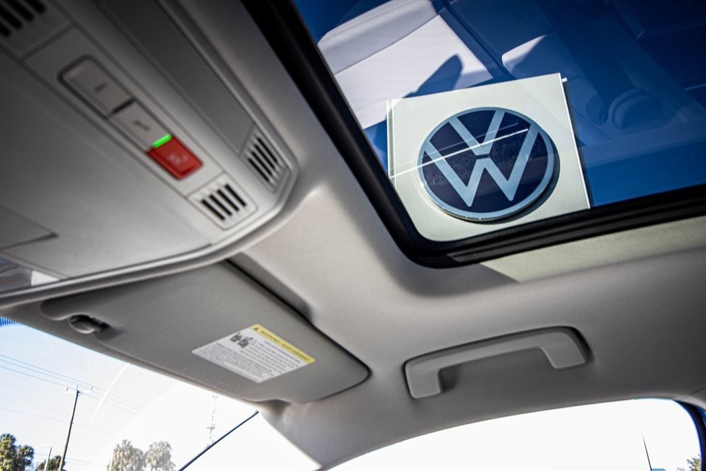Well equipped with Panoramic Sunroof Package, 4-Wheel Disc Brakes, 6 Speakers, ABS brakes, Active Blind Spot Monitor, Air Conditioning, Alloy wheels, AM/FM radio: SiriusXM with 360L, Auto High-beam Headlights, Auto-Dimming Rear-View Mirror, Automatic temperature control, Brake assist, Bumpers: body-color, Cloudtex and Cloth Seating Surfaces, Compass, Delay-off headlights, Driver door bin, Driver vanity mirror, Dual front impact airbags, Dual front side impact airbags, Electronic Stability Control, Emergency communication system: VW Car-Net Safe & Secure 5-year, Exterior Parking Camera Rear, Front anti-roll bar, Front Bucket Seats, Front Center Armrest, Front dual zone A/C, Front reading lights, Front Strut Rear Torsion Beam Suspension, Front wheel independent suspension, Fully automatic headlights, Heated door mirrors, Heated Front Bucket Seats, Heated front seats, Heated steering wheel, Illuminated entry, Leather Shift Knob, Low tire pressure warning, Occupant sensing airbag, Outside temperature display, Overhead airbag, Overhead console, Panic alarm, Passenger door bin, Passenger vanity mirror, Power door mirrors, Power driver seat, Power steering, Power windows, Radio data system, Radio: MIB3 Composition Media AM/FM/HD, Rain sensing wipers, Rear anti-roll bar, Rear seat center armrest, Rear window defroster, Rear window wiper, Remote keyless entry, Rubber Mats Kit, Security system, Speed control, Speed-sensing steering, Split folding rear seat, Spoiler, Steering wheel mounted audio controls, Tachometer, Telescoping steering wheel, Tilt steering wheel, Traction control, Trip computer, Variably intermittent wipers, VW Care, and Wheels: 18" 2-Tone Machined Alloy.