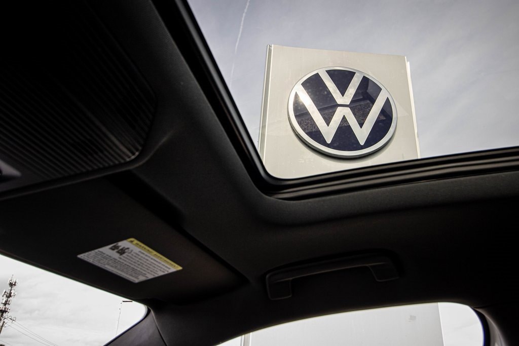Well equipped with 4-Wheel Disc Brakes, 4-Wheel Independent Suspension, 7 Speakers, ABS brakes, Air Conditioning, Alloy wheels, AM/FM radio: SiriusXM with 360L, Auto High-beam Headlights, Auto-dimming Rear-View mirror, Auto-Dimming Rearview Mirror with HomeLink, Automatic temperature control, Brake assist, Bumpers: body-color, Compass, Delay-off headlights, Driver door bin, Driver vanity mirror, Dual front impact airbags, Dual front side impact airbags, Electronic Stability Control, Emergency communication system, Exterior Parking Camera Rear, First Aid Kit, Four wheel independent suspension, Front anti-roll bar, Front Bucket Seats, Front Center Armrest, Front dual zone A/C, Front reading lights, Fully automatic headlights, Heads-Up Display, Heated door mirrors, Heated Front Seats, Heated front seats, Heavy Duty Trunk Liner with VW CarGo Blocks, Illuminated entry, Knee airbag, Leather Shift Knob, Leather steering wheel, Low tire pressure warning, Occupant sensing airbag, Outside temperature display, Overhead airbag, Overhead console, Panic alarm, Passenger door bin, Passenger vanity mirror, Perforated V-Tex Leatherette Seating Surfaces, Power door mirrors, Power driver seat, Power Liftgate, Power moonroof: Panoramic, Power steering, Power windows, Radio data system, Radio: MIB4 Composition Media Touchscreen with AM/FM, Rain sensing wipers, Rear anti-roll bar, Rear reading lights, Rear seat center armrest, Rear side impact airbag, Rear window defroster, Rear window wiper, Remote keyless entry, Roadside Assistance Kit, Rubber Monster Mats Kit (set of 4), Security system, Speed control, Speed-sensing steering, Split folding rear seat, Spoiler, Sport steering wheel, Steering wheel mounted audio controls, Tachometer, Telescoping steering wheel, Tilt steering wheel, Traction control, Trip computer, Turn signal indicator mirrors, Variably intermittent wipers, VW Care, and Wheels: 20" Black Painted Alloy.