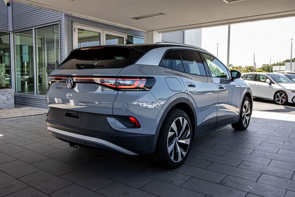 Recent Arrival! CARFAX One-Owner. 2022 Certified. Volkswagen ID.4 Pro S AWD Moonstone Gray/Black Roof 1 Florida/Local Owner, BLUETOOTH / APP-CONNECT, APPLE CARPLAY, ANDROID AUTO, NAVIGATION, 20" WHEEL PKG, TRAILER HITCH 2700lb CAPACITY, LIGHT ASSIST, HANDS FREE POWER LIFTGATE, REAR VIEW CAMERA SYSTEM, PARK DISTANCE CONTROL, DYNAMIC ROAD SIGN DISPLAY, TRAVEL ASSIST, LANE ASSIST, FORWARD SOLLISION WARNING, BLIND SPOT MONITOR, REAR TRAFFIC ALERT, VOKSWAGEN CERTIFIED _BALANCE OF FACTORY WARRANTY PLUS A 3yr or 36,000 MILE CERTIFIED WARRANTY, ID.4 Pro S, 4D Sport Utility, Single-Speed Automatic, Air Conditioning, Automatic temperature control, Black Roof, Emergency communication system: VW Car-Net services (capabilities require enrollment or subscription), EV Roadside Assistance Kit, Exterior Parking Camera Rear, First Aid Kit, Front dual zone A/C, Gradient Package, Heated door mirrors, Heated Front Seats, Heated front seats, Heated steering wheel, Heavy Duty Trunk Liner w/VW CarGo Blocks, ID.4 Protection & Convenience Package, Memory seat, Navigation System, Perforated V-Tex Leatherette Seating Surfaces, Power door mirrors, Power Liftgate, Power passenger seat, Power windows, Radio data system, Radio: Discover Pro Max w/12" Touchscreen Nav, Remote keyless entry, Rubber Mats Kit (Set of 4), Silver Accents on Front & Rear Bumpers, Spoiler, Steering wheel mounted audio controls, Turn signal indicator mirrors, Wheels: 20" Dynamic Design Machined Alloy. 100/90 City/Highway MPG Volkswagen Certified Pre-Owned Details: