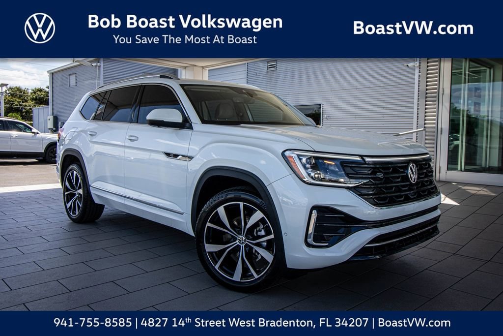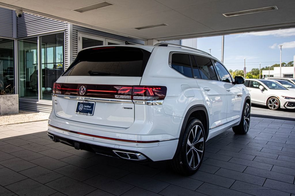 CARFAX One-Owner. 2025 Certified. Volkswagen Atlas 2.0T SEL Premium R-Line AWD Opal White Pearl 1 Florida/Local Owner, Volkswagen CERTIFIED 2yr / 24k bumper to bumper warranty, BALANCE OF FACTORY WARRANTY, PLUS A @ YEAR V24,000 MILE VW CERTIFIED WARRANTY, APPLE CARPLAY, ANDROID AUTO, POWER LIFTGATE, REAR VIEW CAMERA, 2nd ROW CAPTAINS CHAIRS, 3rd ROW SEATING, TRAILER HITCH 5000LBS, DYNAMIC ROAD SIGN DISPLAY, TRAVEL ASSIST, PARK ASSIST, LANE ASSIST, BLIND SPOT MONITOR, VW DIGITAL COCKPIT, POWER PANORAMIC SUNROOF, NAVIGATION, FORWARD COLLISION WARNING, HEAD-UP DISPLAY, WIRELESS CHARGING DOC, REAR AC, HEATED AND VENTILATED FRONT SEATS, HEATED REAR SEATS, Atlas 2.0T SEL Premium R-Line, 4D Sport Utility, AWD, 10 Speakers, 21" 2-tone machined alloy wheels, 3rd row seats: split-bench, AM/FM radio: SiriusXM with 360L, Automatic temperature control, Delay-off headlights, Emergency communication system: VW Car-Net Safe & Secure 5-year, harman/kardon® Speakers, Heads-Up Display, heated and Actively ventilated front bucket seats, Heated door mirrors, Heated front seats, Heated rear seats, Heated steering wheel, Illuminated entry, MIB3 discover media with navigation, Navigation System, Power door mirrors, Power passenger seat, Radio data system, Rear audio controls, Rear window defroster, Spoiler, Telescoping steering wheel, Turn signal indicator mirrors, Ventilated front seats. Volkswagen Certified Pre-Owned Details: